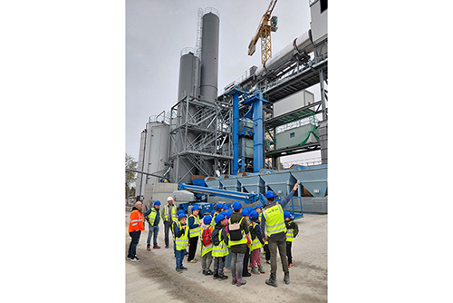Ein zentrales Thema war die Nachhaltigkeit: Die Kinder lernten, dass Teer im Straßenbau bereits seit den 1970er-Jahren aufgrund seiner Beschaffenheit verboten ist. Stattdessen wird heute Asphalt verwendet. Aus Bitumen, Splitt und Recyclingmaterial wird neuer Asphalt, der – zur Freude der Schüler – hervorragend wieder recycelbar ist. Besonders beeindruckend war die Besichtigung der neuen Asphaltmischanlage mit ihrer „Paralleltrommel“. Diese Anlage, die voraussichtlich Mitte Juni 2026 fertiggestellt wird, ist auf dem modernsten Stand der Technik. Sie kann alten Asphalt wiederverwerten, sodass bis zu 90 Prozent Recyclingmaterial in neuen Straßenbelag fließen können.