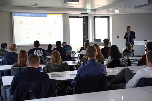 Ein besonderer Programmpunkt war die Vorstellung der Dünnschicht- und Kurzwegdestillation durch VTA, bei der das breite Anwendungsspektrum der Technologie – von Chemie und Pharma über Lebensmittel bis hin zu Polymer- und Recyclingprozessen – erläutert wurde. Zudem informierte das Team der MAX STREICHER Anlagentechnik über die vielfältigen Einstiegsmöglichkeiten für Studierende, von Praktika und Abschlussarbeiten bis hin zum Berufseinstieg.